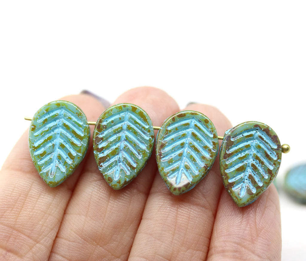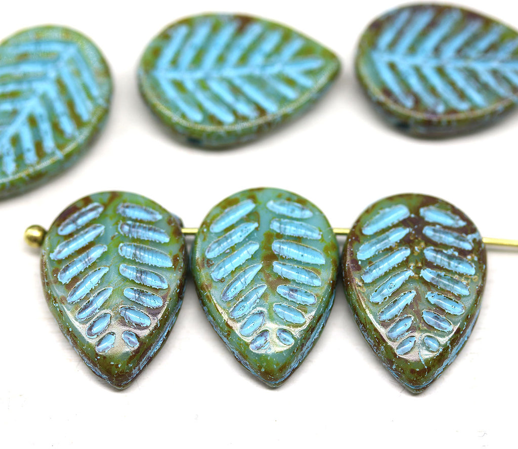 12x16mm Picasso blue side drilled leaf Czech glass beads 6pc