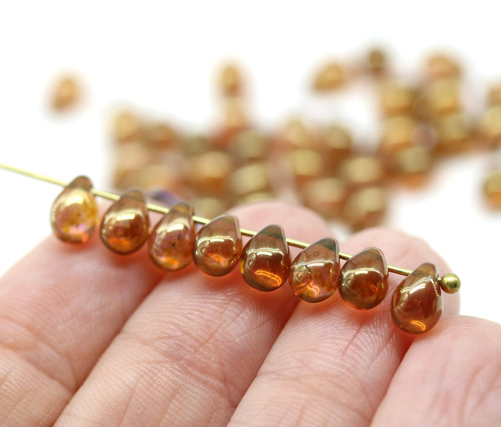 5x7mm Brown Pink teardrops pressed czech glass beads, 40pc