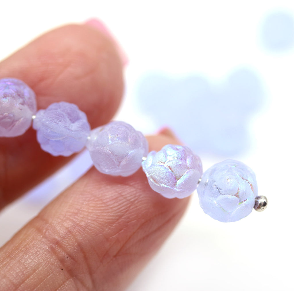 7mm Rose Bud Czech Glass Beads Frosted Lilac 20pc