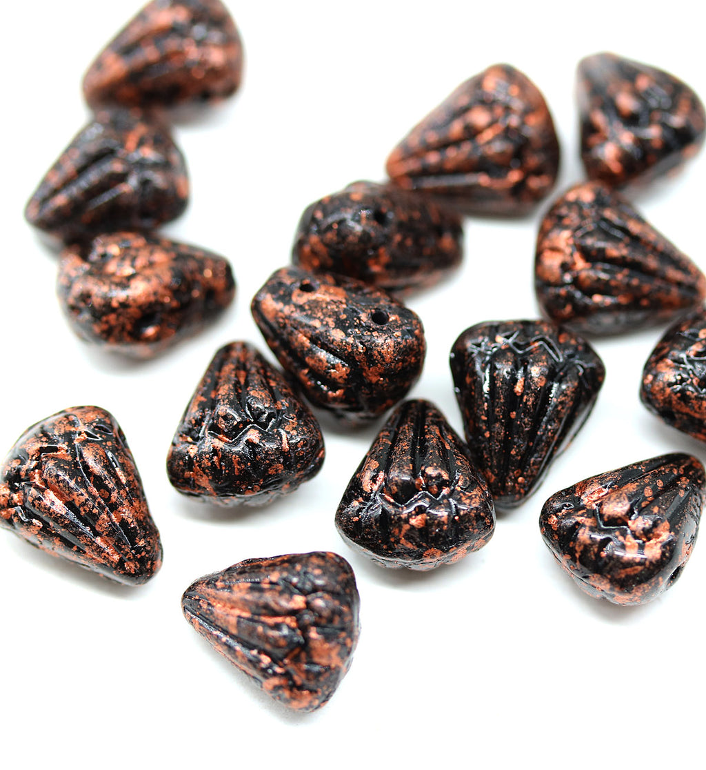 Lotus Czech glass beads Black Copper Wash: two hole, 15pc