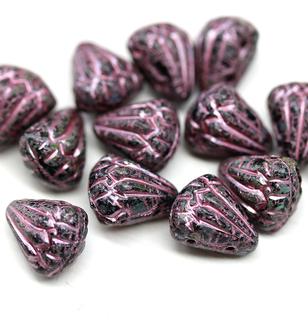Lotus Czech glass beads Black Pink Wash: two hole, 15pc