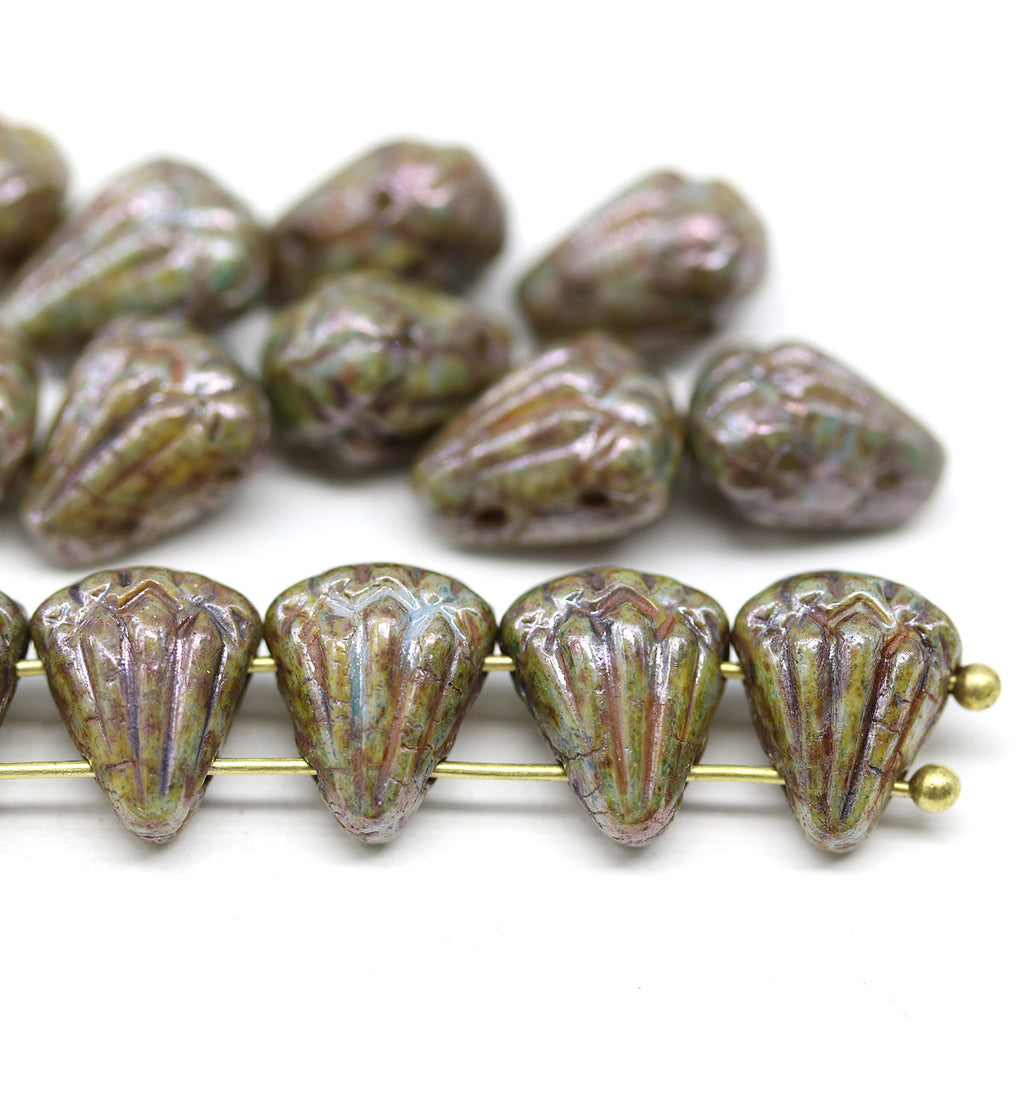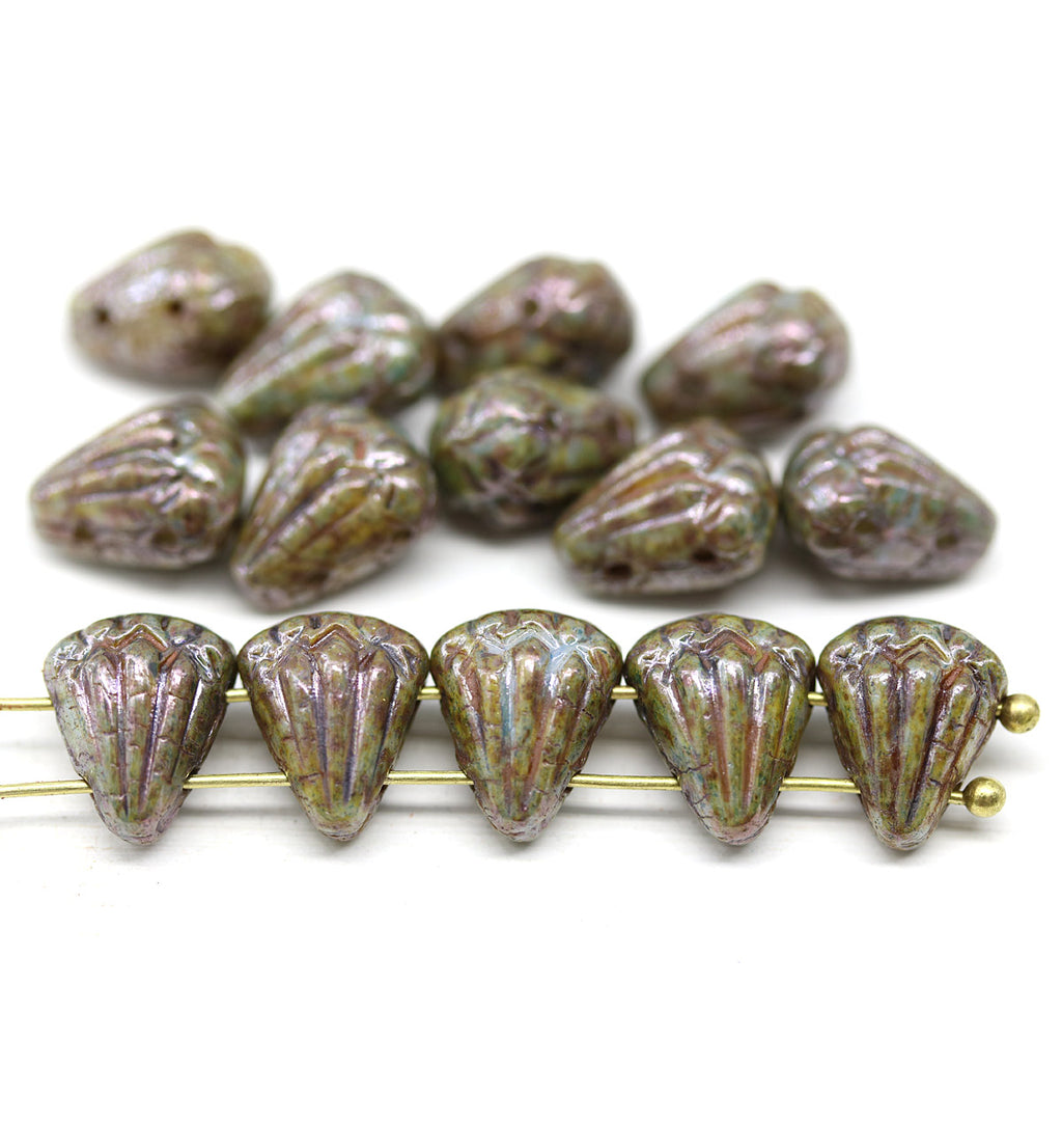 Lotus Czech glass beads Picasso Brown: two hole, 15pc